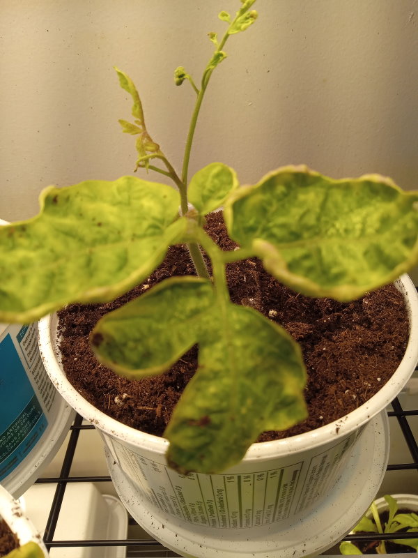 They all looked great until I potted them into the large pots I normally used to grow them to fruiting stage. I used a potting soil mixed with steer manure from bags, which I used to swear by. A few days in, they looked okay, until the roots reached the contaminated soil.