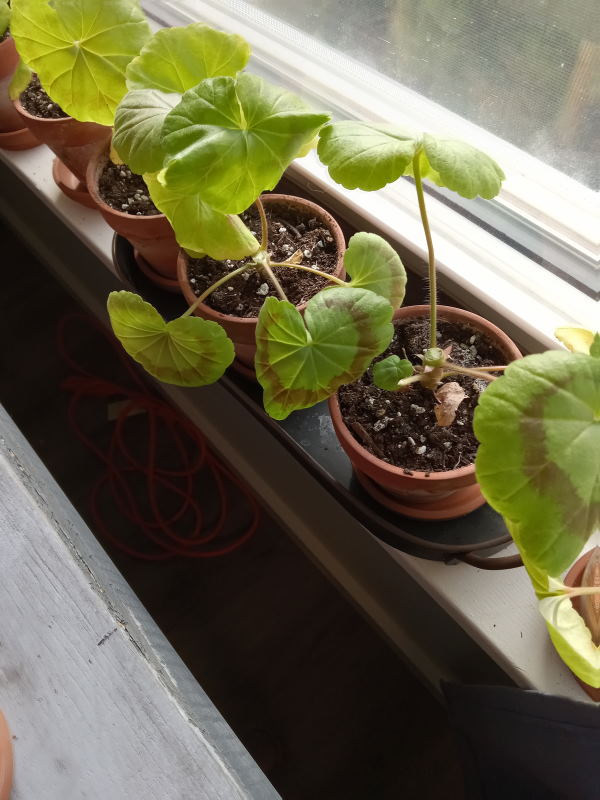 Seed grown Geraniums, just after cutting off the tops to propagateIn time, I'll take cuttings off my favorite colors and overwinter them, letting the frost take all the others.